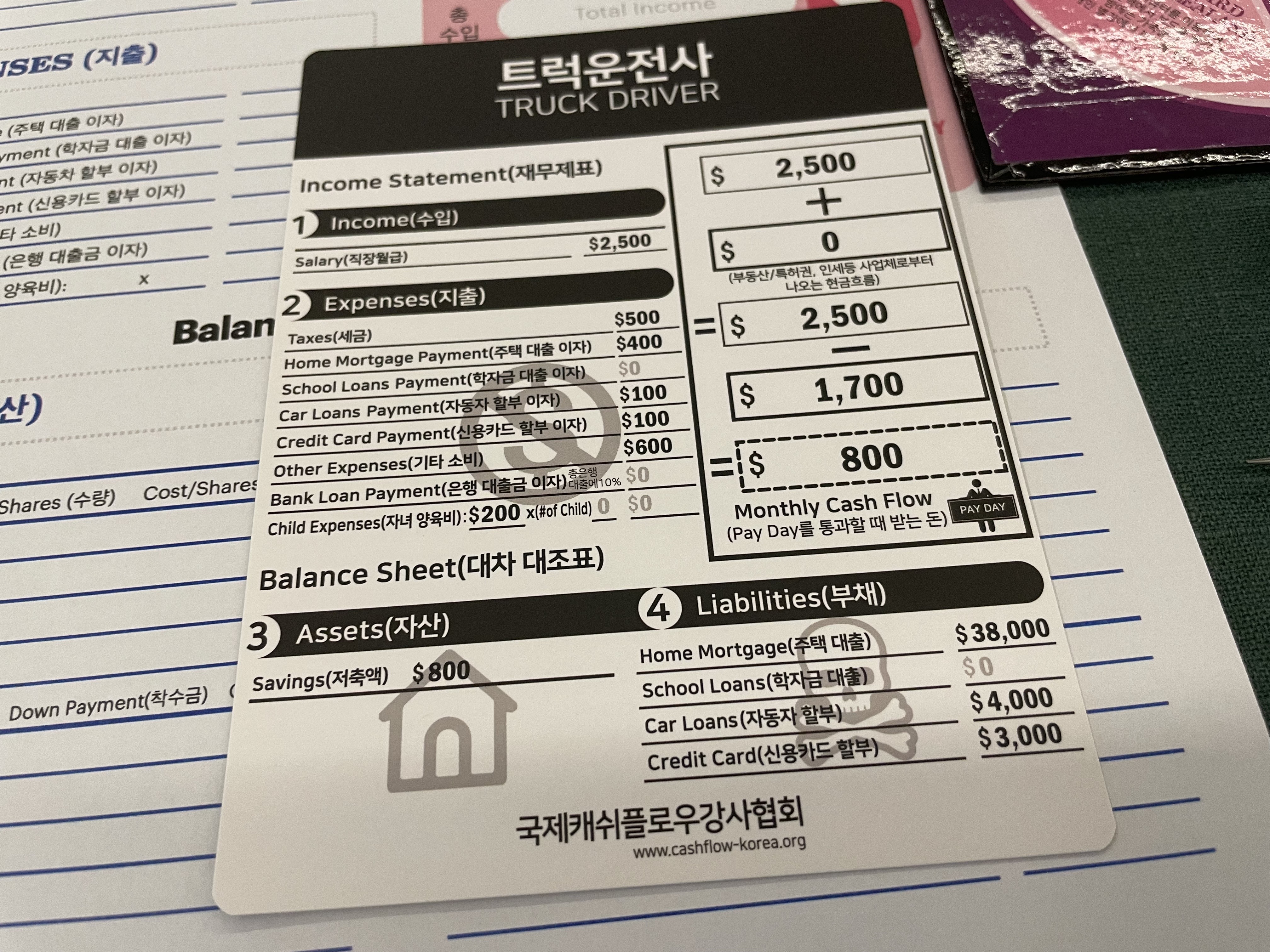 생각대로 재밌는 보드게임이고 부자 아빠 가난한 아빠를 읽지 않아도 즐기는데 아무 지장이 없다는 게 마음에 들었다.