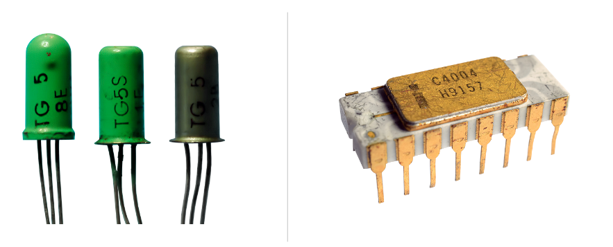 1947년, 최초로 트랜지스터 반도체 소자가 만들어진 이래 전자 산업은 진공관 소자를 반도체 소자로 바꾸면서 비약적으로 발전했다. 라디오, 텔레비전, 컴퓨터 등 여러 전자제품에는 크고 깨지기 쉽고 사용 전력도 많이 들었던 진공관 소자를 사용했는데, 이제 오래 사용 가능하고 전력도 훨씬 덜 쓰는 반도체 소자를 사용할 수 있게 됐다. 이런 비약적인 발전도 집적회로가 만들어진 사건에 비하면 그 변화는 제한적이었다.