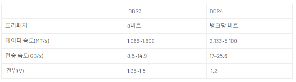 DDR3과 DDR4 비교