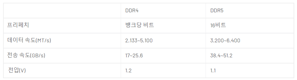 DDR4과 DDR5 비교