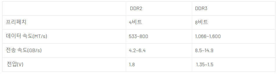 DDR2과 DDR3 비교