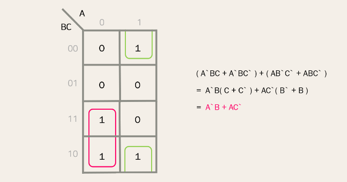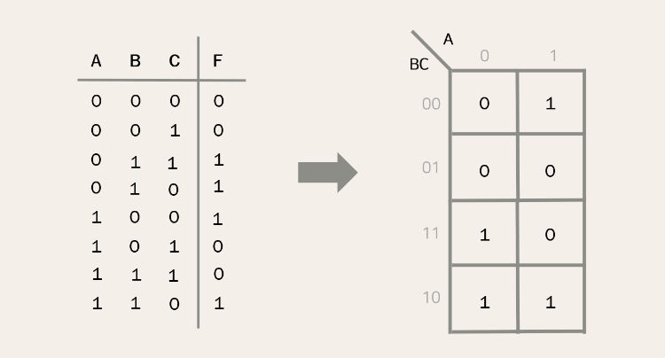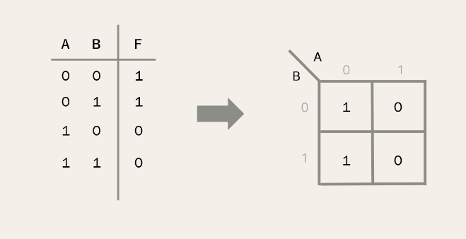 복잡한 논리식을 간소화시킬 수 있는 방법 중에 하나로, 1이 나오는 경우(최소항)만을 추려서 그때의 입력값을 식으로 표현한 것이다. 정리하자면 카르노맵은 식 간소화 기법!