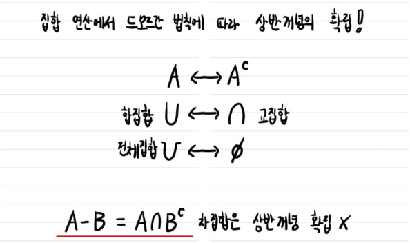 단, 집합의 연산 중 차집합은 항상 저렇게 형태를 바꿔서 연산하기 때문에 상반개념이 따로 확립되지 않는다.