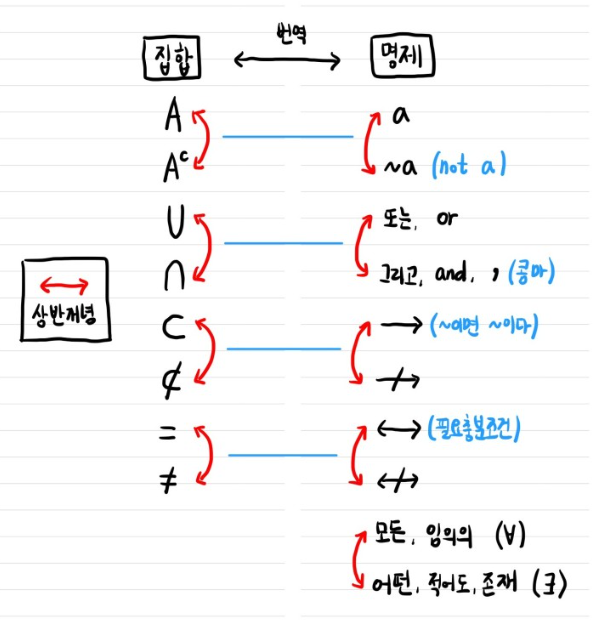 집합 기호와 명제 기호 간의 상호번역 #진리집합 #드모르간법칙