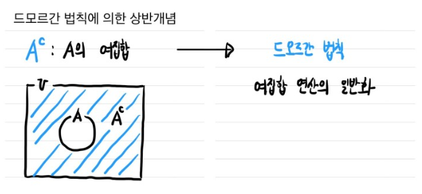 이런 식으로 집합에서 상반개념을 확립할 수 있게 된다.