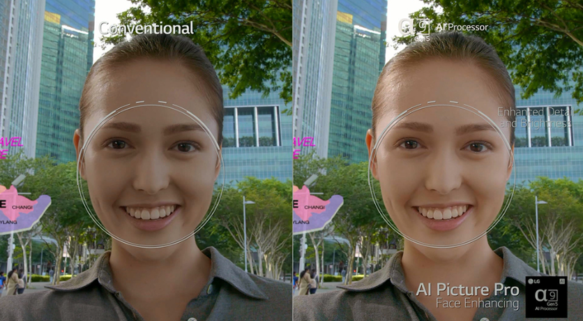 해상도가 낮은 영상을 재생하면 픽셀이 꺠지기도 하고 노이즈 현상이 발생해 화면이 선명하게 보이지 않는 문제가 생긴다. 이때 영상 속 얼굴, 사물, 글씨 등을 인식해 노이즈를 줄이고 해상도를 높여 또렷하게 보이도록 만드는 기술을 '업스케일링'이라고 한다. 딥러닝 기반 인공지능으로 화면의 배경까지 구분해 더 선명하고 생생한 화면을 구현한다.