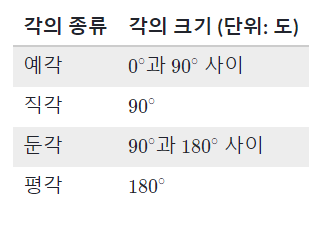 평각과 비교해보면 둔각이 180º보다 작다는 것을 알 수 있다.