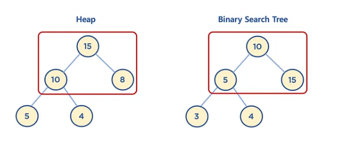 - 힙 트리에서는 중복된 값을 허용한다. (이진 탐색 트리는 중복된 값을 허용하지 않는다.)