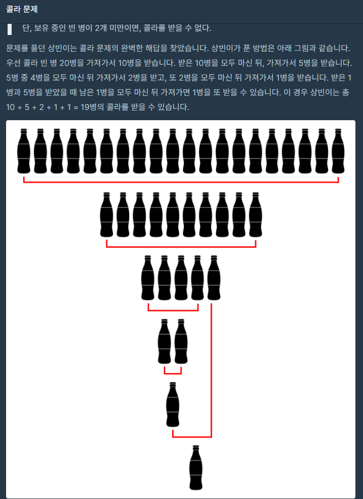 오래전 유행했던 콜라 문제가 있습니다. 콜라 문제의 지문은 다음과 같습니다.