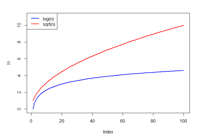 i^2 <= n이므로 log_i n = 2로 표현이 가능하다. 베이스를 생략하고 양변을 2로 나눠주면 log n/2로 작성이 가능하다. 이때 지수가 아닌 수를 생략하므로 log n으로 표현된다.