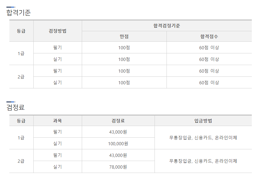 2급 기준 필기 43,000원 실기 78,000원에 신청이 가능하다.