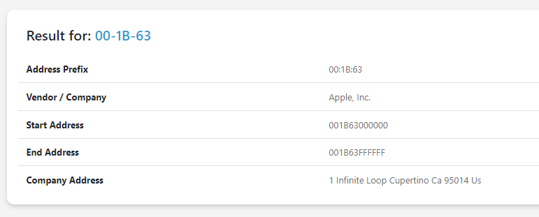 MAC Address Lookup - MAC/OUI Vendor Search