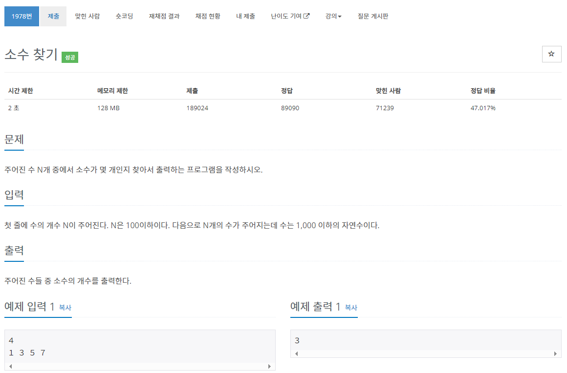 주어진 수들 중 소수의 개수를 출력한다.