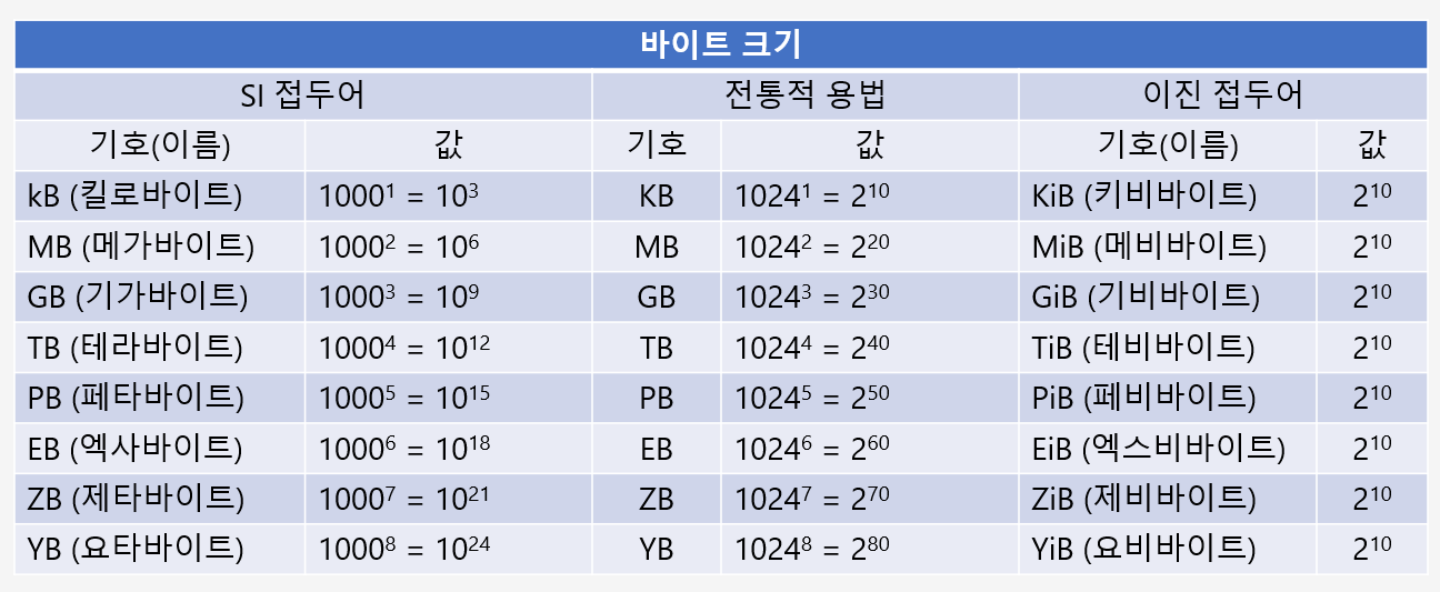 정확한 수치는 모르더라도 대략적인 크기를 판단할 정도는 숙지하고 있어야한다.