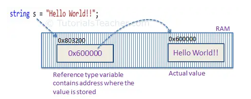 Value Type and Reference Type In C#, these data types are categorized based on how they store their value in the memory. C# includes the following categories of data types: Value type Reference type Pointer type Value Type A data type is a value type if it