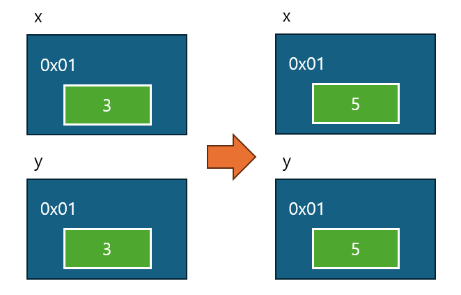 그래서 함수를 통해서 y를 변경하면 x도 함께 변경된다.