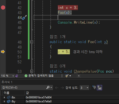 Foo 함수에 인자로 넘겨진 x는 그 자체로 Foo 함수에 돌입하는 것이 아니라 복사된 상태로 Foo 함수에 돌입한다.