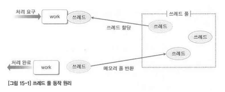 스레드 풀은 처리해야 하는 할 일이 등록되기 전에 생성되는데, 풀이 생성됨과 동시에 스레드들도 생성되어 풀에서 대기하게 된다. 지능적인 풀은 처리해야 할 일의 증가 및 감소에 따라 풀 안의 스레드 개수를 늘리기도 하고, 줄이기도 한다.