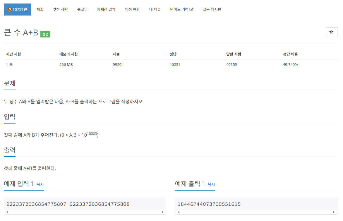 두 정수 A와 B를 입력받은 다음, A+B를 출력하는 프로그램을 작성하시오.