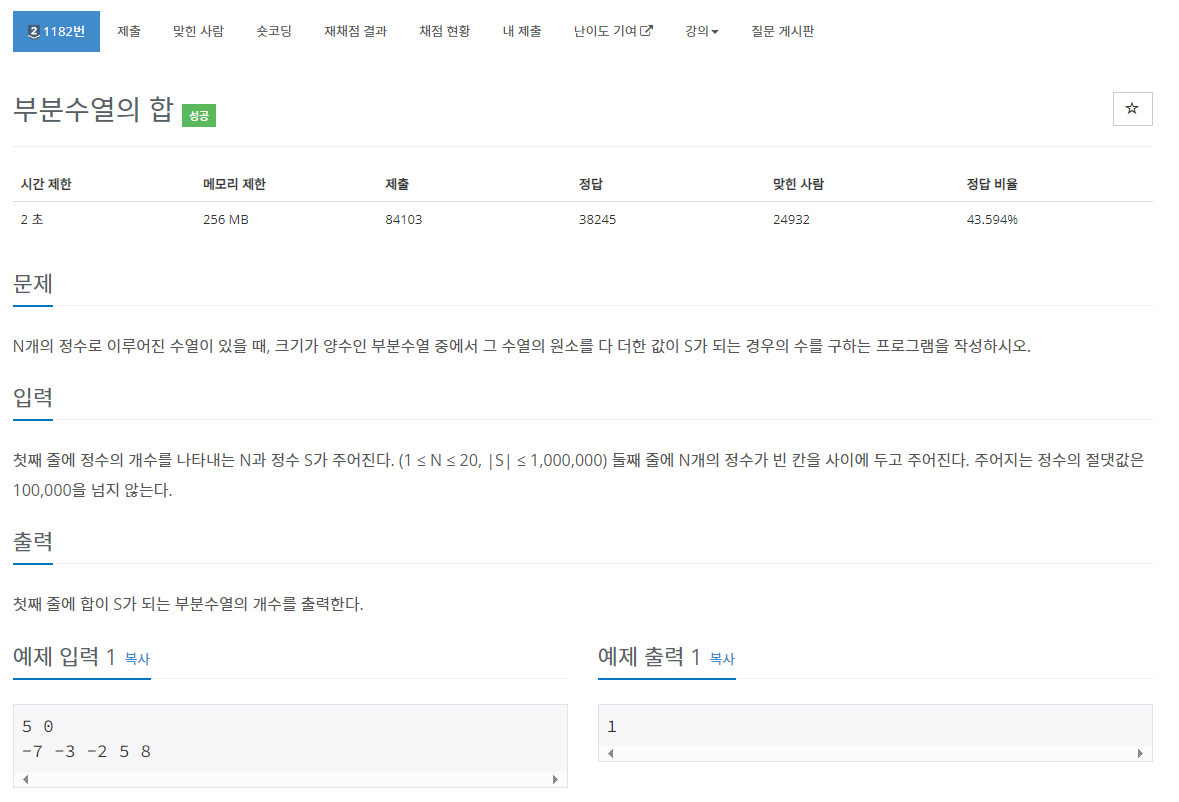 N개의 정수로 이루어진 수열이 있을 때, 크기가 양수인 부분수열 중에서 그 수열의 원소를 다 더한 값이 S가 되는 경우의 수를 구하는 프로그램을 작성하시오.