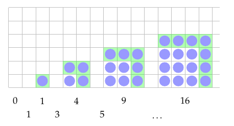 $$ \Box_n = \sum_{i=1}^n (2i - 1) = n^2 $$