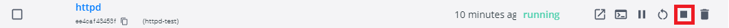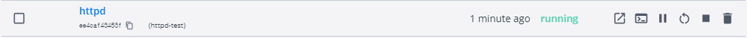 Containers 탭에서 httpd를 확인 가능하다. 현재 상태 running으로 실행 중이다.