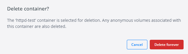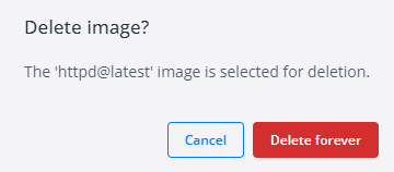 그 이후에 휴지통 버튼을 누르고 Delete forever를 선택하면 컨테이너에서 제거된다.