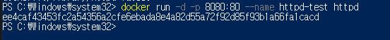 -p는 호스트의 8080 포트를 컨테이너의 80 포트와 연결하겠다는 의미이다.
