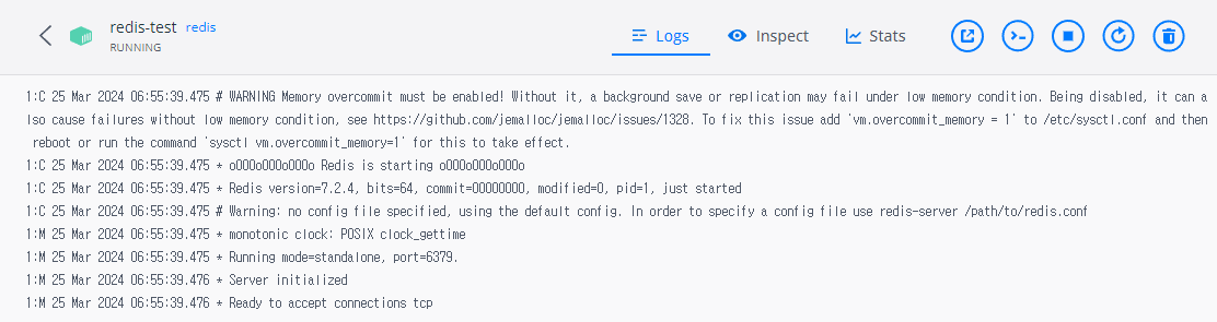 - --name 컨테이너의 이름을 지정해준다. 여기서는 redis-test 라는 이름을 사용했다.