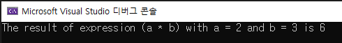 Console.WriteLine($"The result of expression {expr.Body} with a = {a} and b = {b} is {comResult}");