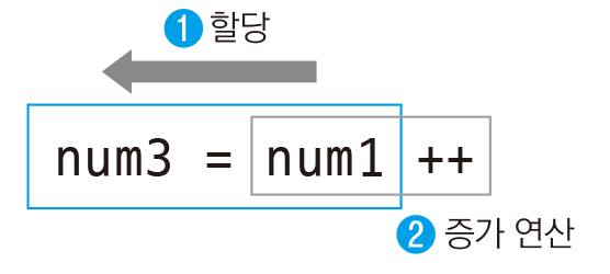 증감 연산자는 변수 앞에 사용할 수도 있고 뒤에 사용할 수도 있습니다. 여기서 증감 연산자만 단독으로 사용했을 때는 큰 차이가 없지만, 연산자를 사용한 뒤 다른 변수에 할당할 때는 위치에