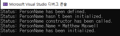 Console.WriteLine("Status: PersonName constructor has been called.");