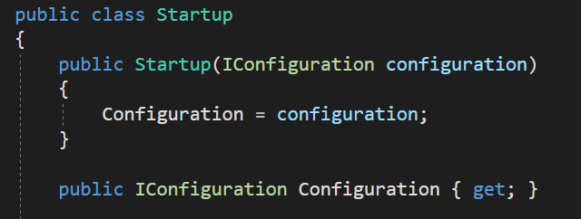 이 서비스 자체는 프레임워크 서비스이기 때문에 별도로 서비스 컨테이너에 등록하는 과정 없이 바로 의존성 주입(dependancy injection)을 이용해서 사용이 가능하다. Startup.cs에서 사용하기 위해서 의존성 주입한 예제이다.