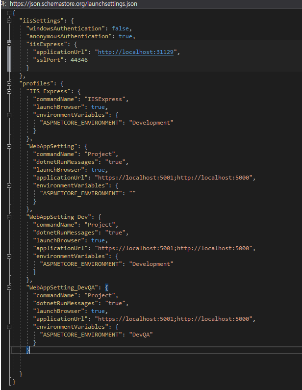 "ASPNETCORE_ENVIRONMENT": "Development"