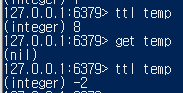 key가 삭제되었으면 -2를 리턴, expire time이 설정되지 않았다면 -1을 리턴