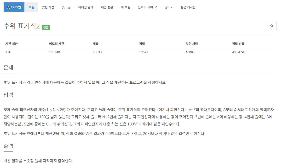후위 표기식과 각 피연산자에 대응하는 값들이 주어져 있을 때, 그 식을 계산하는 프로그램을 작성하시오.