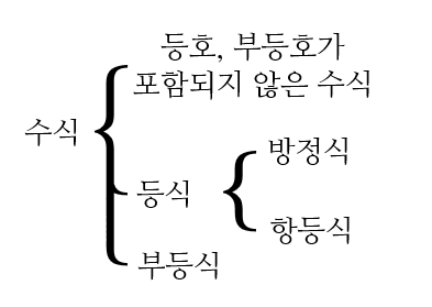 - 방정식: 미지수에 따라 참이 되기도 하고 거짓이 되기도 하는 등식