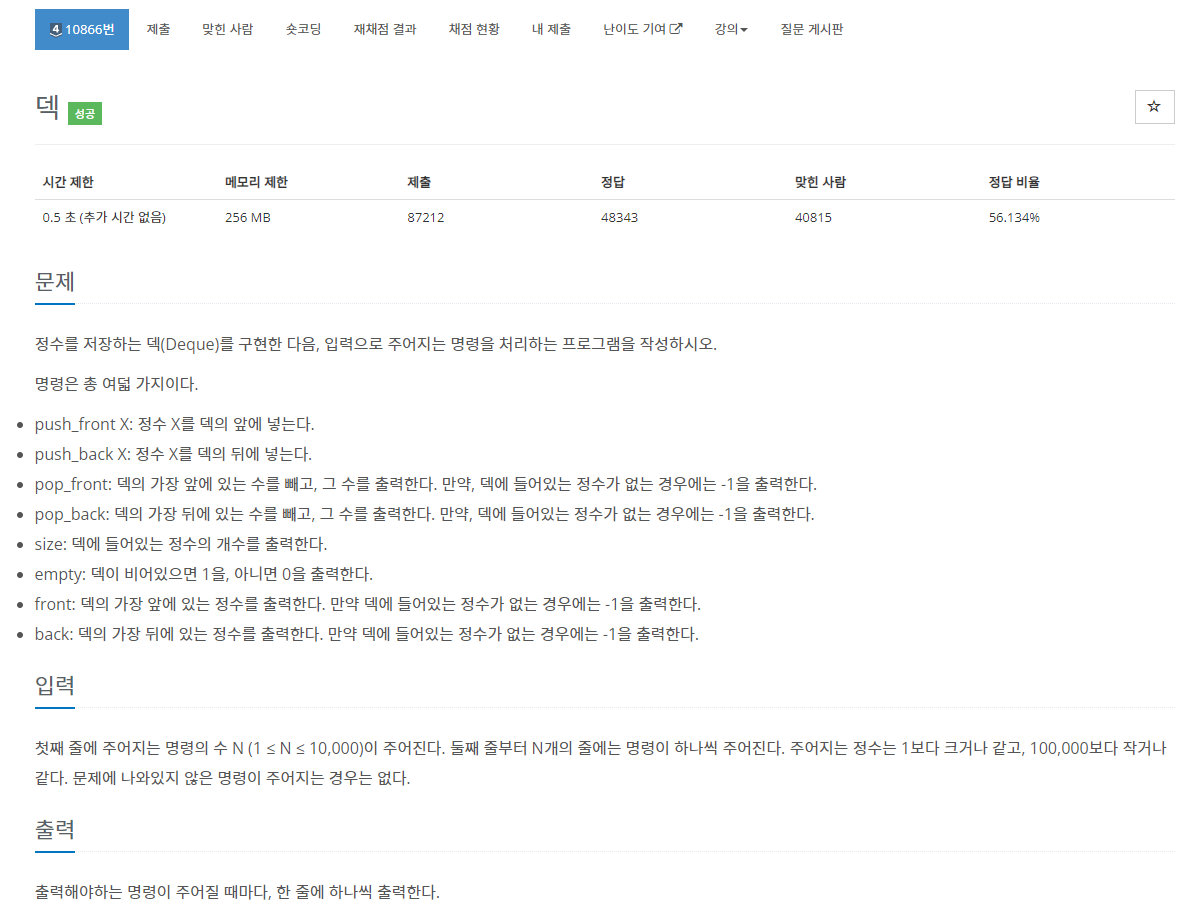 정수를 저장하는 덱(Deque)를 구현한 다음, 입력으로 주어지는 명령을 처리하는 프로그램을 작성하시오.