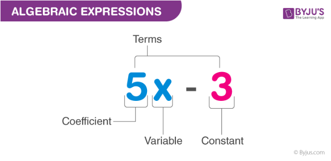 Algebraic expressions are the mathematical equations consisting of variables, constants, terms and coefficients. Learn the different types of algebraic expressions with examples at BYJU’S.