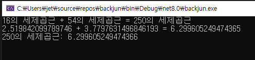 Console.WriteLine($"16의 세제곱근 + 54의 세제곱근 = 250의 세제곱근");