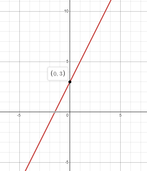 이 함수의 그래프는 기울기가 2이고 y절편이 3인 직선이다.