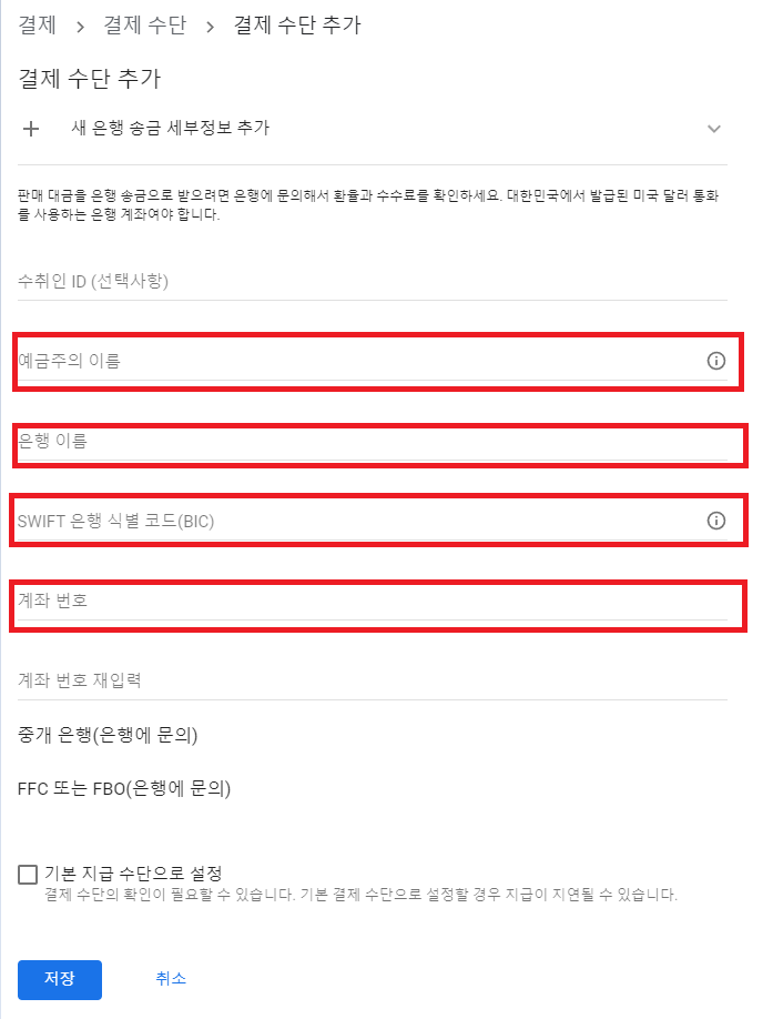 - 예금주의 이름 : 영문으로 작성하자