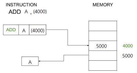 - 메모리 주소 4000에 5000이라는 값을 가져온다. 이때 5000은 데이터 값이 아니라 메모리 주소를 의미한다.