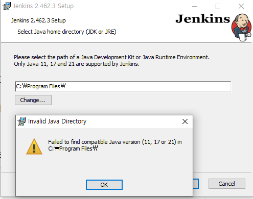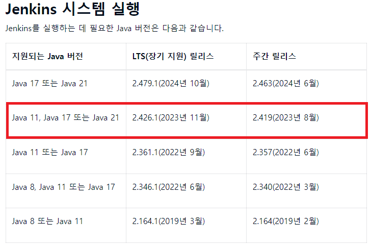 📌 시작하기에 앞서, 22년 6월 릴리즈 버전부터 jenkins를 설치할 때 필요로 하는 java 버전이 11또는 17로 바뀌었다고 한다. 최신 JAVA 20 버전 설치 후, jenkins 설치시 버전 호환 오류가 발생한다면, Java