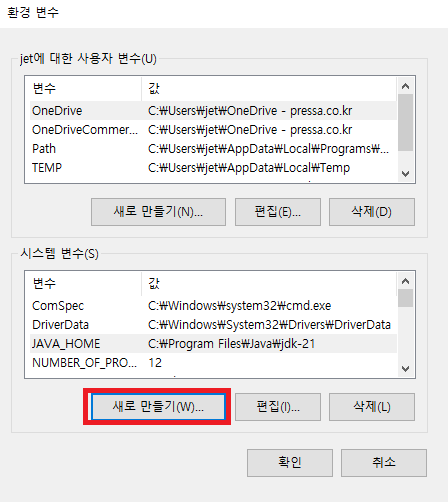 - 변수 값 : C:\Program Files\Java\jdk-21