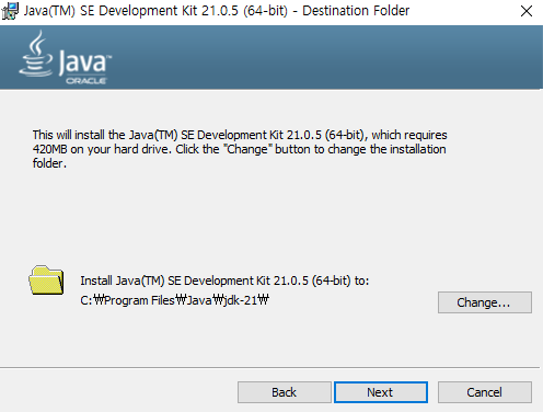 JDK21 - x64 MSI Installer로 다운로드