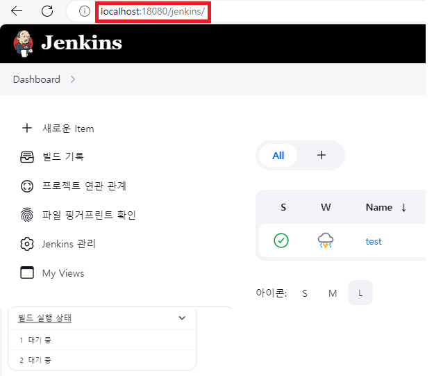 만약 포트번호를 18080으로 설정했다면 localhost:18080으로 젠킨스에 접근이 가능하다.