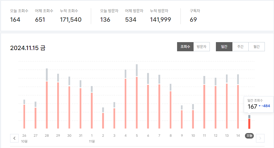 | 티스토리 월간 방문자수 1만명 돌파 (3) | 2024.04.01 |