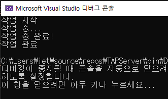 Console.WriteLine("작업 완료");