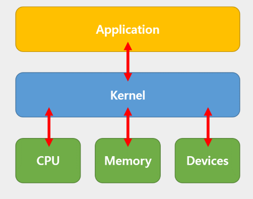 운영체제(OS, Operating System)는 컴퓨터나 스마트폰 같은 시스템에서 하드웨어와 소프트웨어 자원을 관리하고 운영하는 시스템 소프트웨어이다. 하드웨어, 운영체제, 애플리케이션의 관계는 다음과 같다.